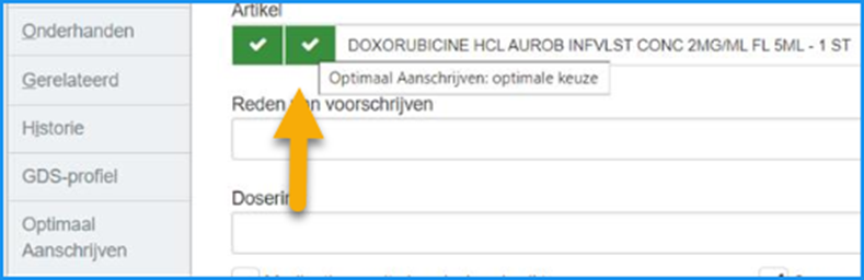 Wordt het artikel gekozen met een positief advies, dan zie je dit terug in het scherm. NB het betreft in praktijk maar één icoon.